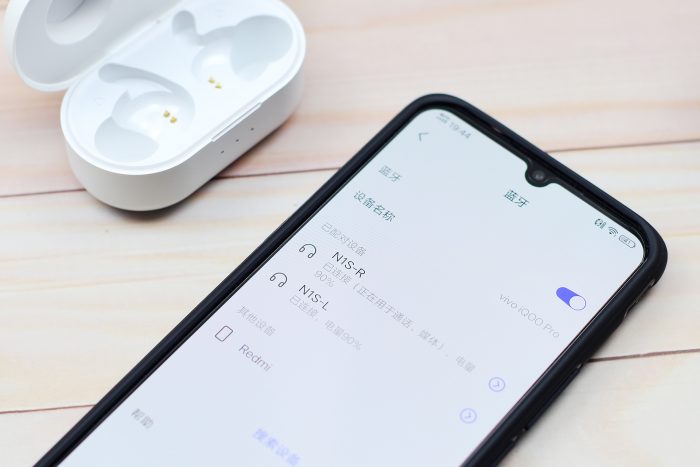 开机之后蓝灯与红灯交替闪烁,这时即可与终端设备进行蓝牙连接。比如手机打开蓝牙之后,就能搜索到N1S-R(右耳)和N1S-L(左耳)两个设备信号。