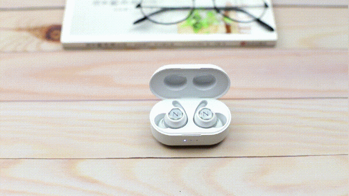 将耳机放入充电仓即可开始充电,这时充电仓正面的电量指示灯亮起蓝色灯光。南卡N1S的充电仓电池容量为450mAh,大约2小时可充满电;单个耳机电池容量50mAh,1小时即可充满,充满电可连续使用5小时左右,续航能力还是比较不错的。