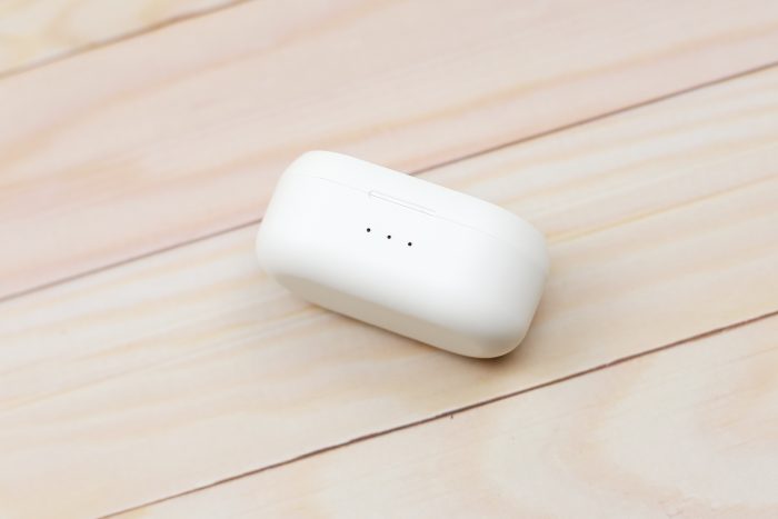 充电仓的背面是一个Micro USB充电接口。值得一提的是,充电仓可以为耳机无线充电,在外使用时再也不用担心耳机突然没电所带来的的尴尬。