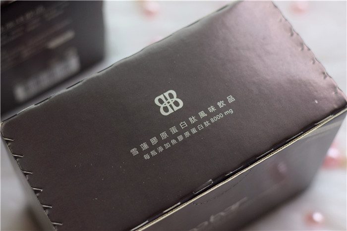 BOBAR雪莲胶原蛋白肽风味饮采用黑色作为包装的主色调整体看起来比较低调典雅,包装的正面印有产品的名称,右上角则标注有产品的来源。包装的顶部则印有产品的汉语名称,并且标注了每瓶添加鱼胶原蛋白肽8000mg。