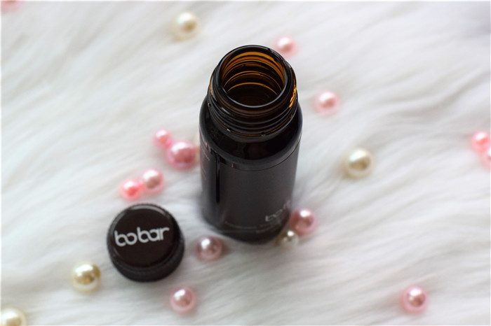 瓶子的正面同样印有BOBAR的标志,表示了它的出身;背面则印有产品的储存条件、使用方法、保质期等信息。