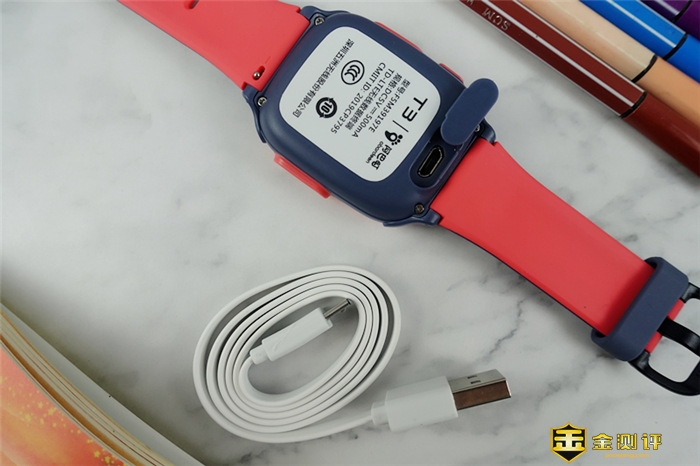 手表的背面则是充电孔位和关于T3的相关参数及相关信息等,能够让你更好的了解阿巴町T3的参数信息,充电上采用的是Micro USB接口,并且在充电孔上还加入了防水防尘盖,能够保证充电孔的安全。