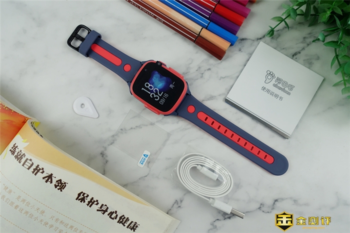当打开包装盒后,可以看到产品被包裹的非常好,也非常的到位,能够保证产品在其运输过程中的绝对安全,在包装内可以看到,主要有,阿巴町T3儿童手表、充电线、贴膜、取卡针、使用说明书、保修卡组成。