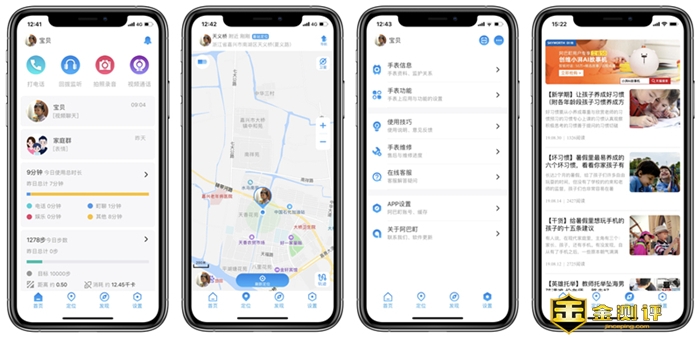 阿巴町手表的APP整体的布局还是不错的,非常的清爽,能够让你一看就懂,并且各个分类也非常的清晰,第一页主要是手表的各项功能区域,主要是打电话、回拨监听、拍照录音、视频通话等,并且还有使用的时间及当前的步数和消耗的卡路里等,还是非常全面的,第二页主要是定位页,在这里能够看到当前孩子的位置,并且也能够查看孩子所运动的轨迹等,第三页主要是一些相关的儿童信息等,第四页就是设置页了,手表的相关功能开启及使用,都在第四页里面进行设置操作即可。