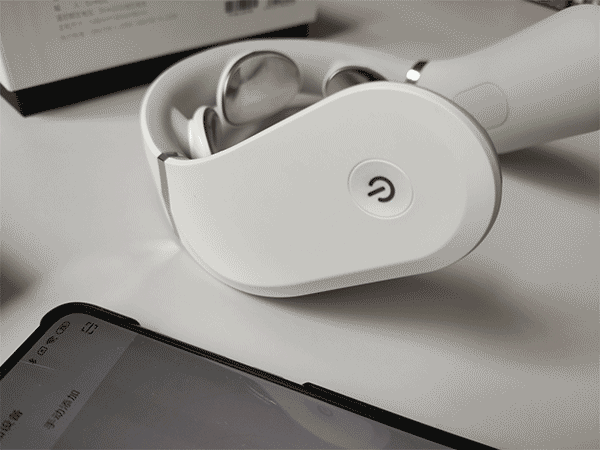 脊安舒 护颈仪 的左边是一个电源开关,短按开关启动显示白光,长按进入蓝牙模式,变成蓝色灯光。