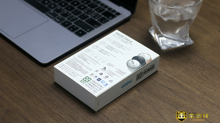 雷柏M600无线鼠标的产品包装盒简约大气,纯白色的硬质纸盒正面有产品的俯视图,相对应在侧面是鼠标的侧面图,这样能够让消费者从包装上就能够得到很直观的感受。