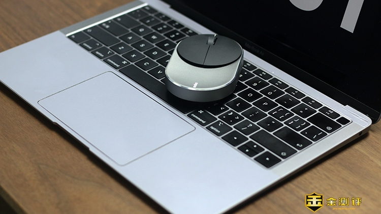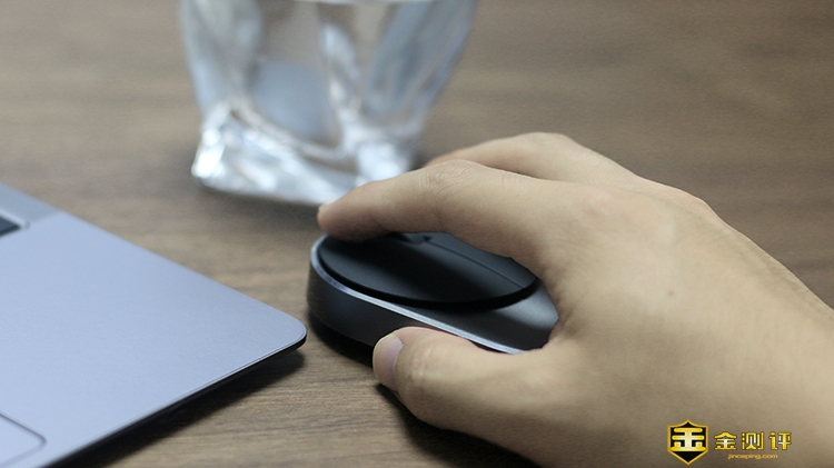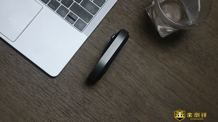 黑色区域的按键+深灰色主体设计跟笔者电脑非常搭,同时其造型设计上也是非常简单直接,像一个被拉长的圆形(腰形)的大体外观。但细节之处打磨却非常好,精简考量下的工艺臻作:阳极氧化铝合金机身,配合细腻喷砂工艺,结合CNC金属切边一体成型。
