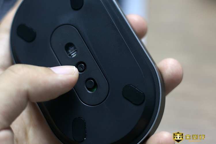 如果你还嫌接收器使用不方便或者像笔者一样本身电脑端无USB接口,那便可以切换到蓝牙连接模式,打开鼠标电源开关以后,长按蓝牙按键3秒: