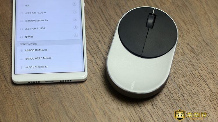 笔者简单的使用了手机端进行体验,打开手机端蓝牙,并切换鼠标端的蓝牙按键,便能够完成两者之间的连接了。