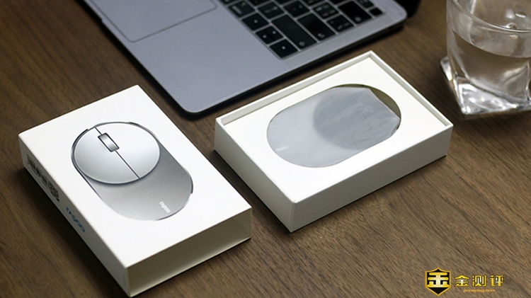 接下来看到我们的主角——雷柏M600无线鼠标,简单的腰形设计,简单的线条和造型却能够给人满满的科技感与动感姿态。鼠标的颜色选择上提供来深空灰、冰川银、玫瑰金三色,而笔者此次收到的是与笔记本非常达的深灰色款。