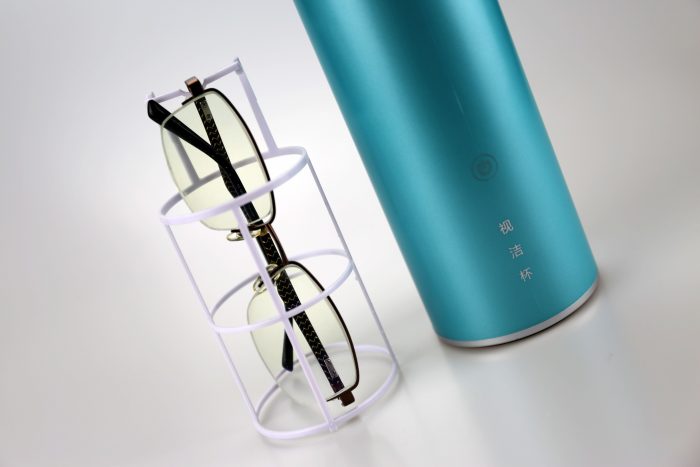 清洗眼镜直接挂在杯架上即可,非常方便,在清洗的时候,我们也可以打开杯盖,观察清洗的情况!