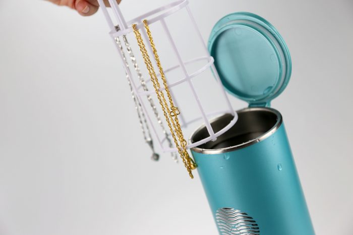 接下来,让我们洗洗珠宝,什么戒指、项链、统统放进去,这些饰品平时佩戴在女士的身上,油渍、残留的化妆、灰尘肯定不少!定时清洗除了更它们更美观以外,对自己的健康也很有好处!