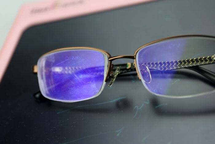 首先登场的当然是笔者的眼镜,可以明显看到镜片上的油污和灰尘,在眼镜腿的部分用手搓捏一下,也能感觉油渍的存在,这种情况经常带眼镜的小伙伴基本习以为常了吧!