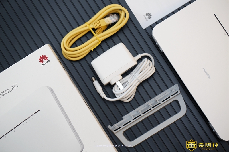 除了电源适配器,还有一个方便安装的底座,可以很方便的将华为4g路由2 pro竖立放置,使用说明书和保修卡,黄色的是2米千兆网线,质量不错软硬适中,没有廉价感。