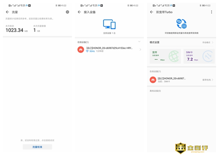 可以进一步查看流量消耗情况,我这里1GB只是随便设置的,其实是没有限制,管理已经联网的设备,是否允许联网、儿童上网时段设置、备注每个设备的主人等,双宽带Turbo会显示当前使用的网络,以及速率如果是手动模式,就要指定通过那个链路上网,默认是宽带。