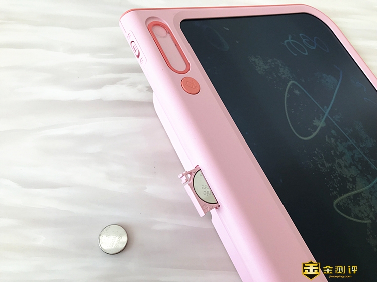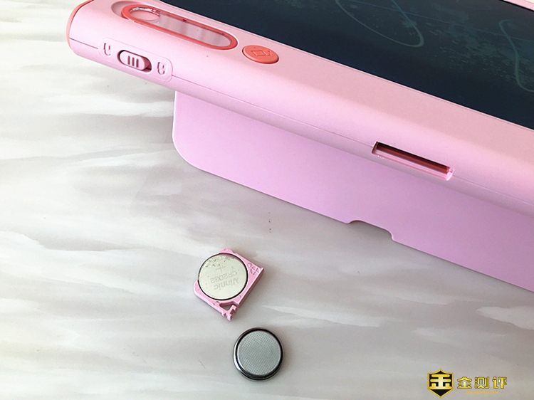 4、电池口:本次入手的TintZone(绘特美)Z系列彩色液晶画板不是USB可充电产品,画板的清屏主要能量来自生活中常见的3V的纽扣电池CR2032。机子出厂是机身内置一块,随配件又赠送了一块,2块纽扣电池保证画板在未来半年的时间续航不是啥问题!