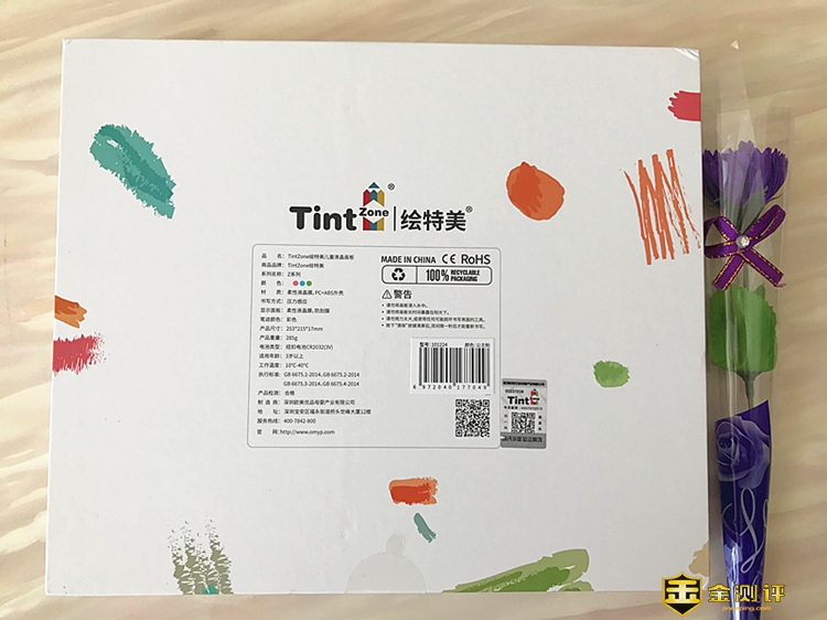 TintZone(绘特美)Z系列彩色液晶画板采用精美礼盒装盛,纯白色打底上面印有产品的缩略图和涂鸦式的各种色彩点缀,包装风格简洁明了的同时却又不失童真,引人进入无限的想象空间,给人以耳目一新的“感脚”。
