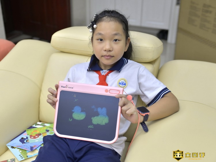 有了TintZone绘特美Z系列彩色液晶画板,孩子主要就开始怼这个画板,有不满意的随时都可以清掉,而且画板的现实效果比较特别,看起来更有趣,唯一遗憾的就是清屏键会一次性把整个屏幕都清掉,如果能有上一步的功能就好了,或者能清除指定区域的涂鸦也好。三色的分区给涂鸦带来了很有趣的变化。平时孩子没玩的时候,我们还能用TintZone绘特美Z系列彩色液晶画板做告示板,用来书写一些内容,挂在墙上,看起来更醒目。整体来说,TintZone绘特美Z系列彩色液晶画板我们全家人都很喜欢,家里有孩子的可以考虑也入手一个来玩。