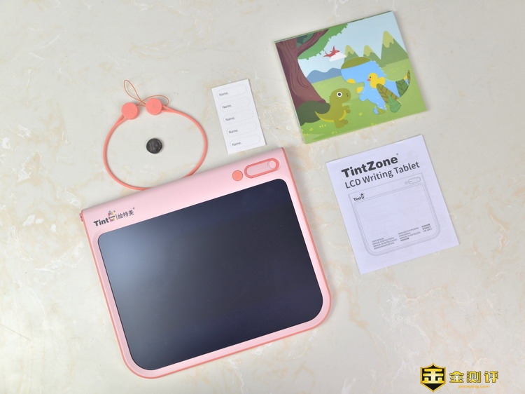 TintZone绘特美Z系列彩色液晶画板的全家福包含:TintZone绘特美Z系列彩色液晶画板本体,画笔(预装在画板侧面),多功能硅胶挂绳,描边画板,专属名牌,替换用的锂电池,使用说明书。
