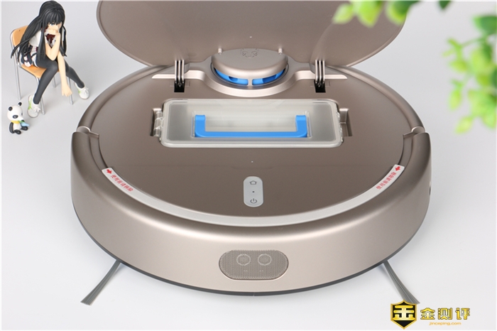 岚豹扫地机器人的清扫机构由底部2个边刷,中间的滚刷,上部的集尘盒以及内置的吸尘装置构成。先说集尘盒,设计从顶部取出,直接掀开上盖就能看到集尘盒。