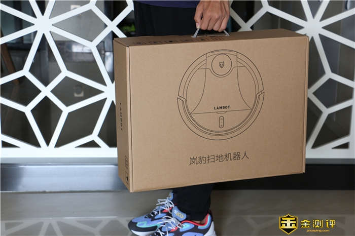 现在都比较流行原色包装,岚豹扫地机器人的包装整体算比较大,因此,设计有专门的提手,方便提携。