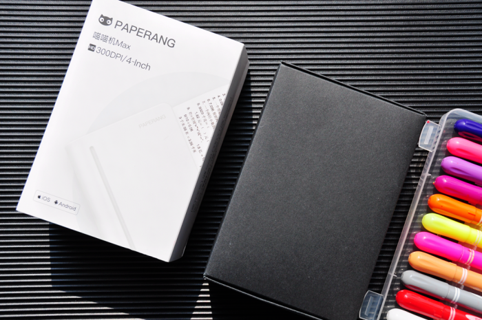 抽出封套,里面是喵喵机Max的黑色包装盒,包装盒内就是本次评测的主角——喵喵机Max打印机了,喵喵机Max由左右两块保护垫包裹,避免了运输途中的碰撞。