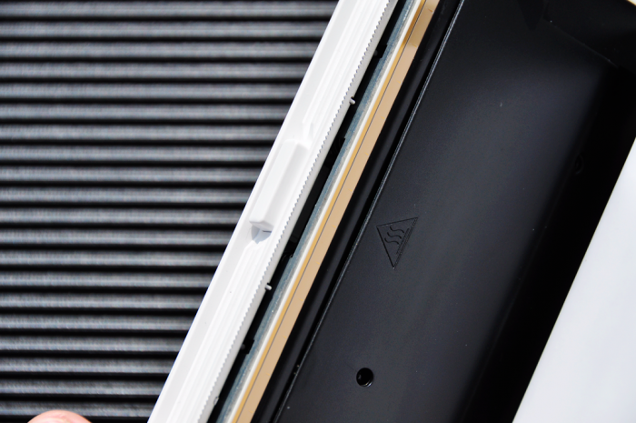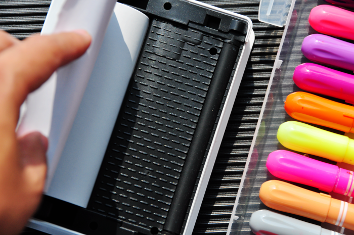 喵喵机Max仓内已安装好热敏打印纸,沿出口的方向设计了平行的虚线凸槽,相当于在内部“托起”了打印纸,让出纸更加顺滑。