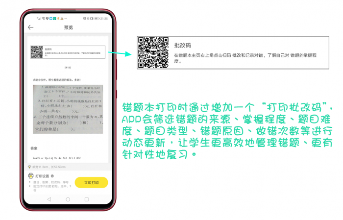 最简单的操作就是将错题拍照、拼接、打印出来,而且APP还可以建立语文、数学、英语的错题库,方便学生今后调阅。让人欣喜的是,喵喵机MAX对错题的整理远不止此。