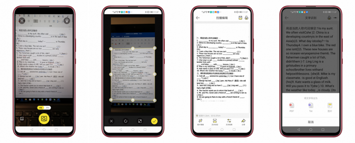扫描软件想必大家都用过,这里就不再赘述了,喵喵机MAX可以进行文档扫描和OCR文字识别操作,很适合在某个补习班看到别人的资料,精华部分拿来即拍即打即用,非常节省时间。笔者尝试直接对着电脑屏幕拍摄英文复习资料,大家可以看一下效果,识别正确率还是不错的,可以直接打印出来做题了,另外也可以转换为PDF、TXT文档或图片保存。