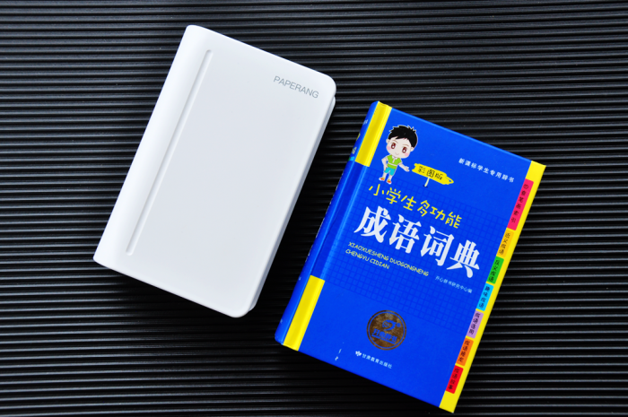 喵喵机Max打印机的机身为通体白色,并采用了书本的造型设计,尺寸上也和一部小型成语词典差不多,便于携带。