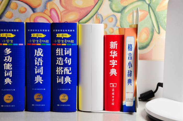 从正面看,机身左侧有一道书脊折痕造型,这种仿真效果使得喵喵机Max看上去更像是一部词典。