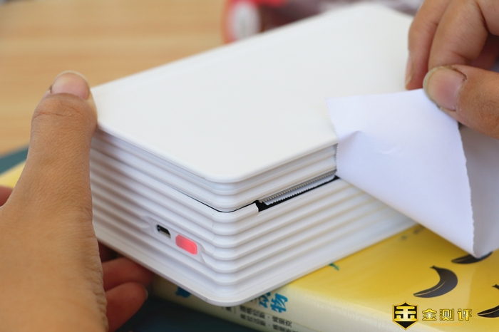 出纸口上方的长方形按钮,是开启打印机的开关,实际按压起来需要按到底才能打开,有些像办公打印机更换硒鼓的感觉。