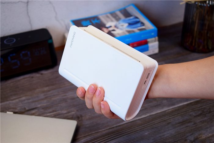 喵喵机MAX采用了书本造型,它看起来其实更像是一本新华字典,整机设计以简约为主,机身正面仅在右上角印有“PAPERANG”字样,其中书本样式能更容易被学生接受,快速融入到学习氛围之中。