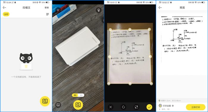 当然除了能够打印系统内置的各种资源,通过喵喵机APP中的“扫喵王”还能让喵喵机MAX实现更多的功能。我还是比较喜欢这个功能的,因为终于不用再抄写老师布置的作业了,通过扫描老师发来的图片,就能自动生成打印文件,而且还能根据需要进行旋转或裁剪,然后直接打印出来就能用了,可以看到字迹也很清晰。