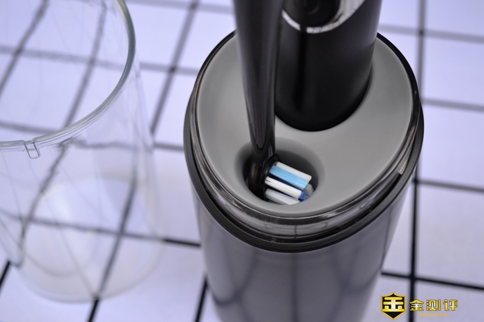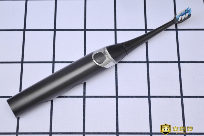下面我们来看看牙刷主机,通黑的设计,只有开关位置坐了一道银色的边框。看起来很漂亮。