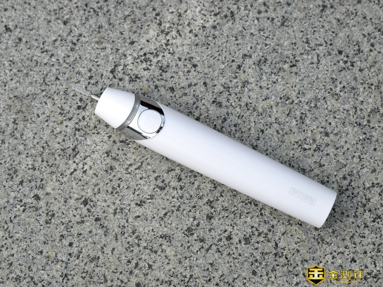 feelove扉乐电动牙刷装上刷头的样子,很细长。feelove扉乐电动牙刷通过开关键启动,也通过开关键来切换护理模式,牙刷默认工作时间2分钟,每30秒会停顿两次,用来提醒换区,2分钟后会自动关机。feelove扉乐电动牙刷具有记忆功能,下次启动就会在上次使用的模式。