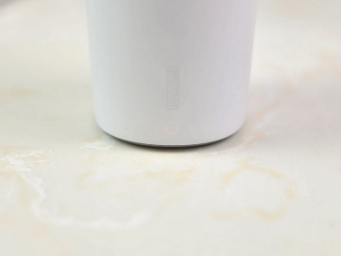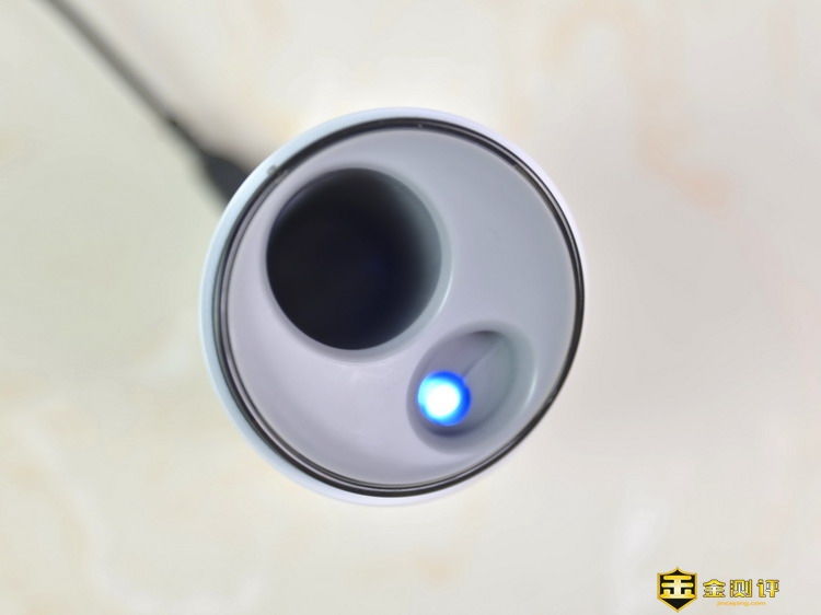 当便携式充电消毒底座通电后,在底座前端扉乐Logo下方会有指示灯亮起,不过亮度有点低,所以如果不仔细看可能会被忽略。