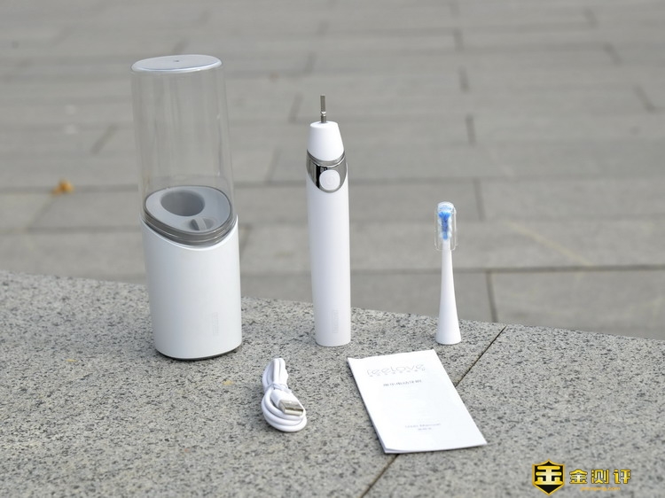 feelove扉乐电动牙刷的装箱清单包含:feelove扉乐电动牙刷主题,原装刷头一个,便携式充电消毒底座,充电线,说明书