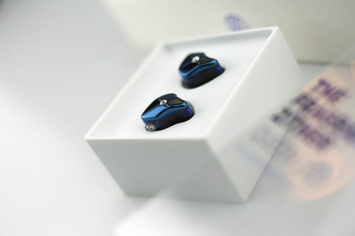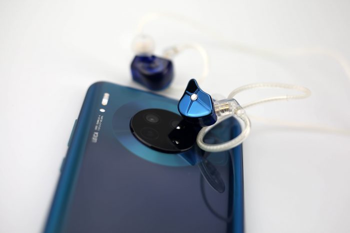 笔者手里这条是宝石蓝配色,整个耳机单元摸上去非常光滑圆润。材质有点像陶瓷和玻璃的一种,从底部还可以直接看到耳机内部的单元构造!