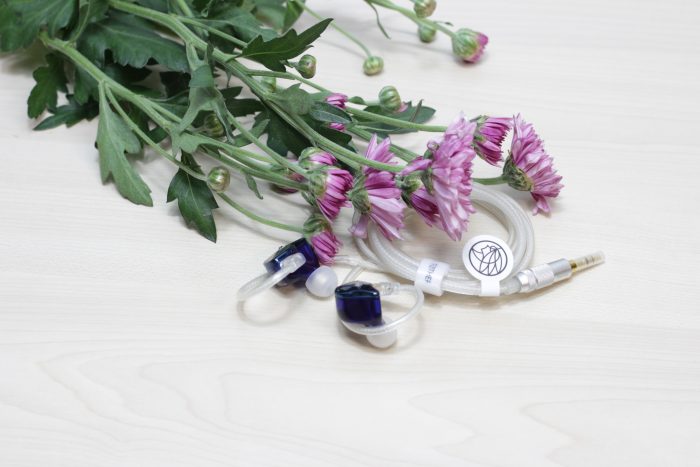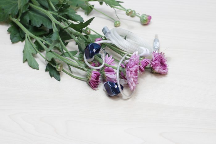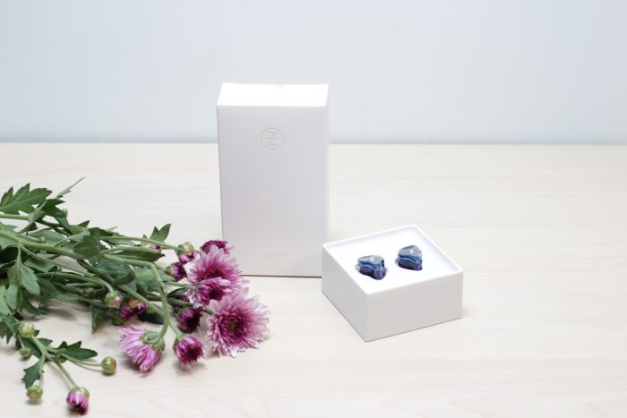 打开包装盒后可以看到两个独立的小盒子,这两个盒子分别装着耳机以及相关的配件。蓝色的耳机镶嵌在白色的盒子上面显得非常耀眼,耳机单元下方则是可拆卸的耳机线。