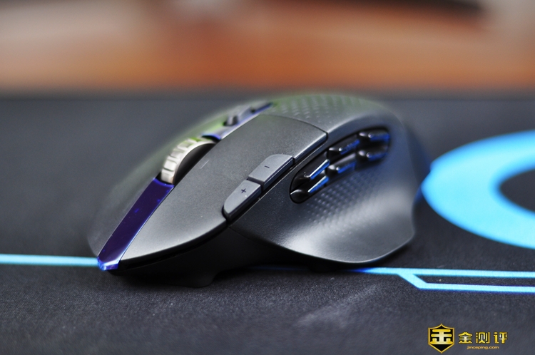 罗技G604左键边缘设有两枚自定义按键,分别以“+”和“-”符号标示,小编大多用这两枚按键调节音量。
