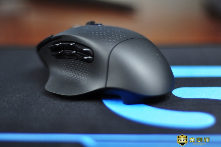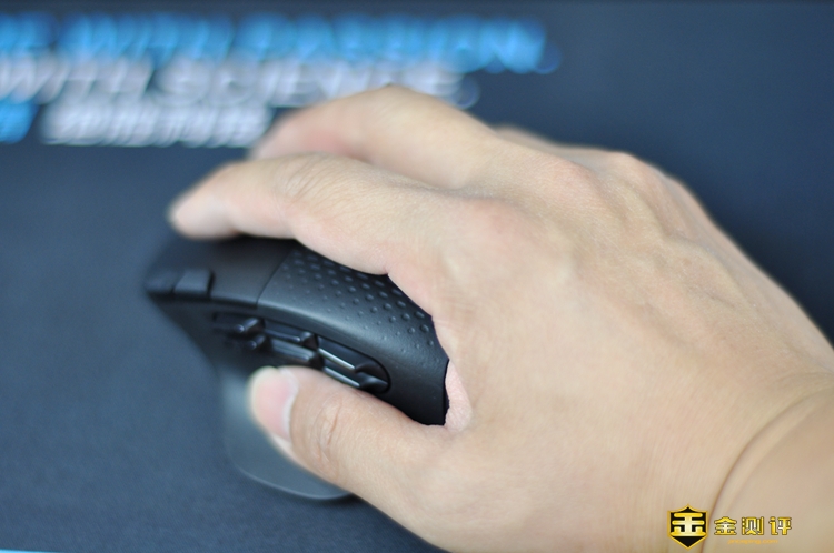 罗技G604采用了人体工学设计,由于大鼠设计,在安装电池后的重量为136克,较普通轻量级鼠标来说,还是比较有分量的。G604整体用料和做工扎实有质感,趴握非常舒适,侧裙给拇指预留的休息位非常贴心,拇指摆放非常自然,真是即便用久了,也不必担心手累或手疼。
