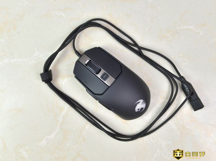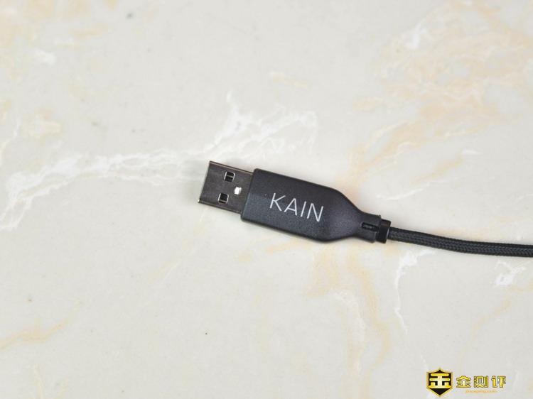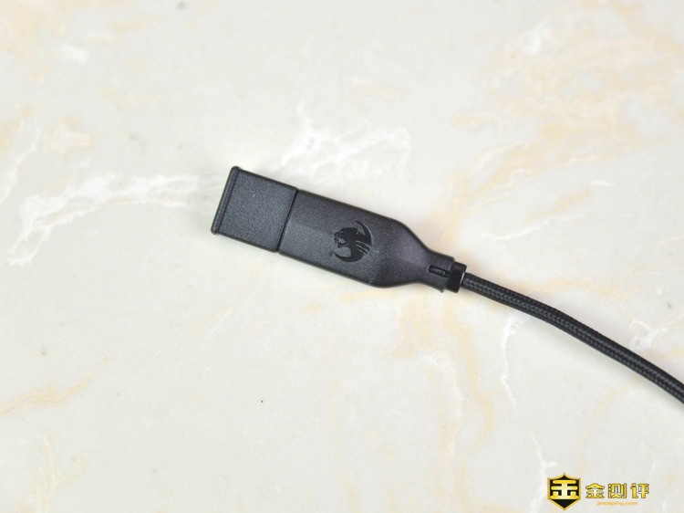 冰豹卡宴120的鼠标插头正反面都有冰豹的Logo,并且还有保护盖防止插头污损,这点细节不错。线材最外层是尼龙编织的,更强韧。