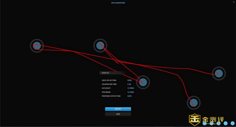 右下角的校准按键点击后,就能进入校准程序,测试所得DPI是精准的。