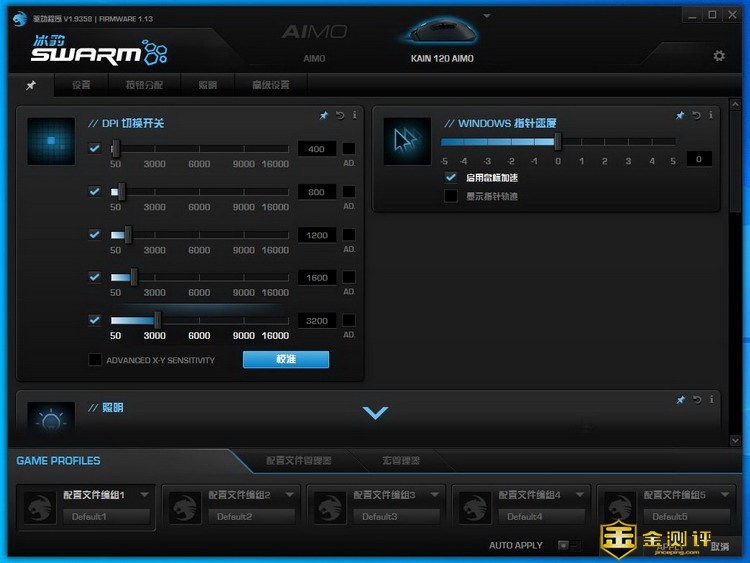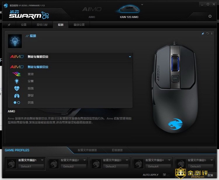 冰豹卡宴120插入USB后,鼠标的RGB灯光系统就会亮起,默认是AIMO灯效。