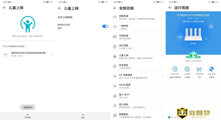 儿童上网模式,路由器运行记录周报,实时监控家里的上网质量。