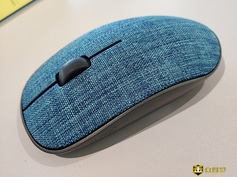 相对于在低调的大地色缔造自由“布”羁的摩登型格的亚麻灰和沉稳出击、质感满格全天候形影布离的曙岩黑的意境中间,这款钴蓝绿的布艺鼠标更能体现招财猫的生活品味和灵感需求。雷柏M200PLUS非常的小巧精致,鼠标的尺寸三维分别为113*64*30mm,正面由滚轮、左键和右键组成,鼠标左侧握手处有雷柏的品牌logo,鼠标曲线线条轮廓设计非常的流畅,给人以耳目一新的感觉!