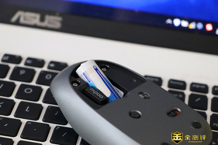 供电方式上,依然采用经典的一节干电池供电,理论续航可达9个月左右,可谓持久。接收器也隐藏在电池槽附近,不用时可以收纳起来避免丢失。