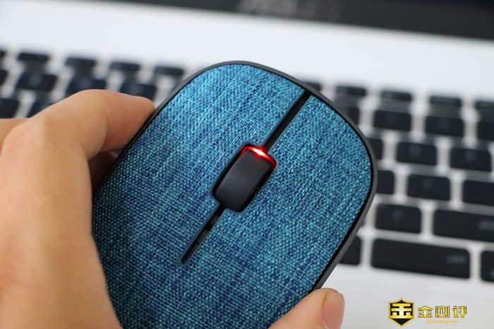 鼠标采用新颖的布艺上盖设计,拥有多种颜色可选,体验的这款暂且可以叫它牛仔蓝吧,亚麻布料颜色很纯正。