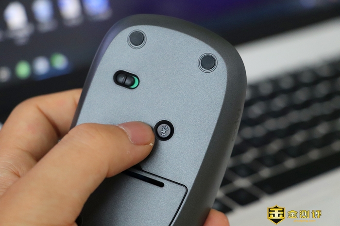 鼠标在滚轮下设计了一个状态指示灯,用来指示当前所处的设备以及鼠标电池电量的指示。